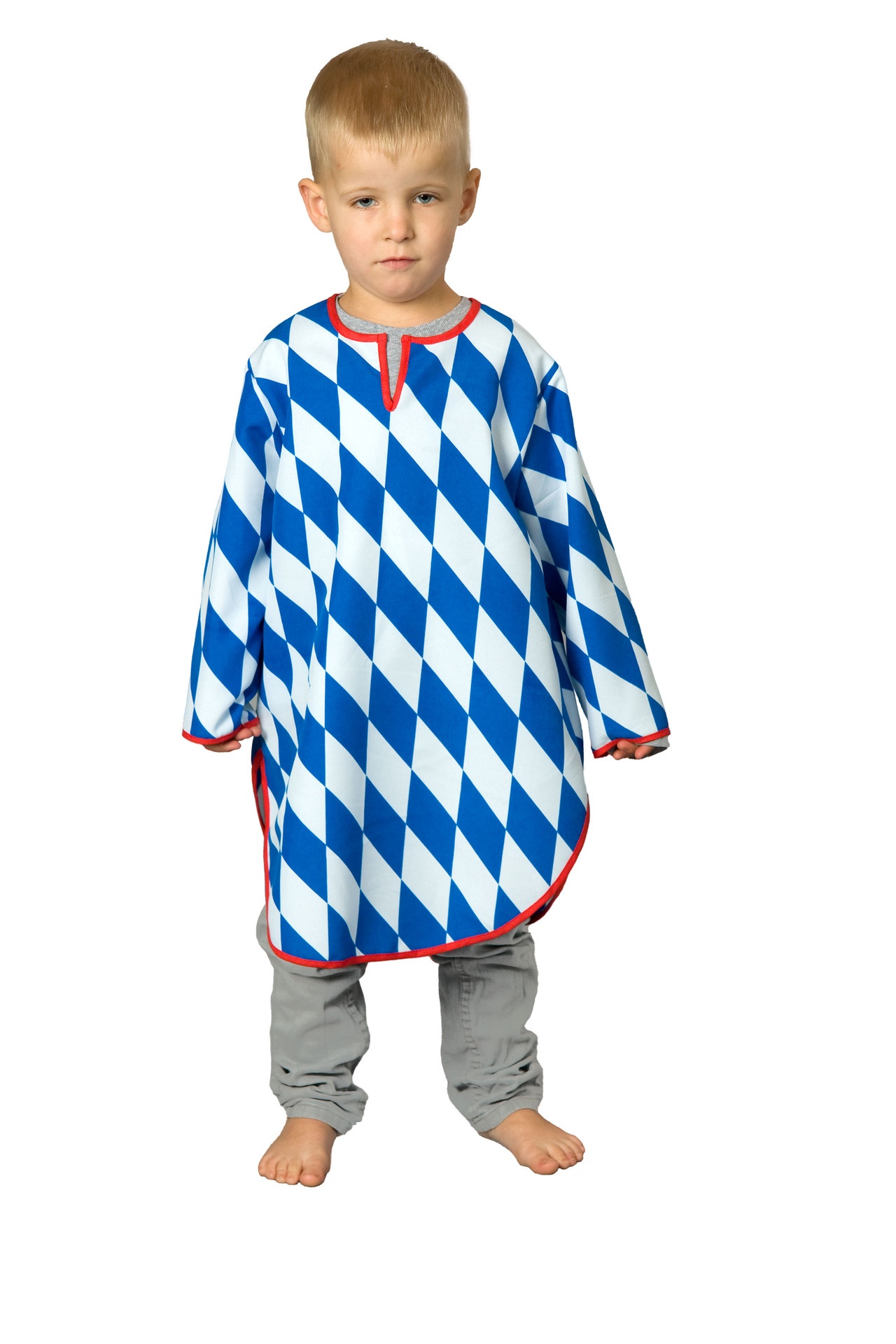 Bayerisches Nachthemd aus Polyestergewebe in den Farben weiß und blau.