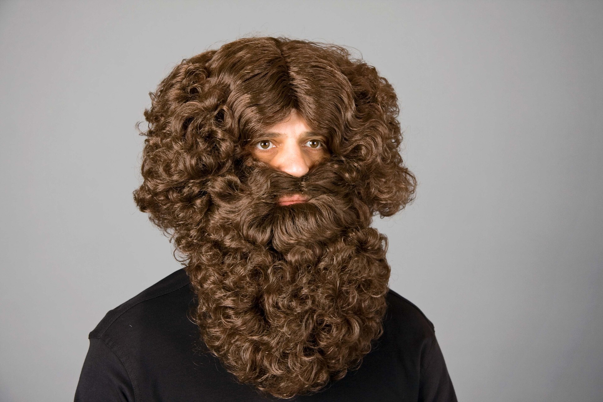 Lockenperücke mit dichten, buschigen Locken. Die Haube der Perücke hat einen Gummizug und passt sich jedem Kopf an