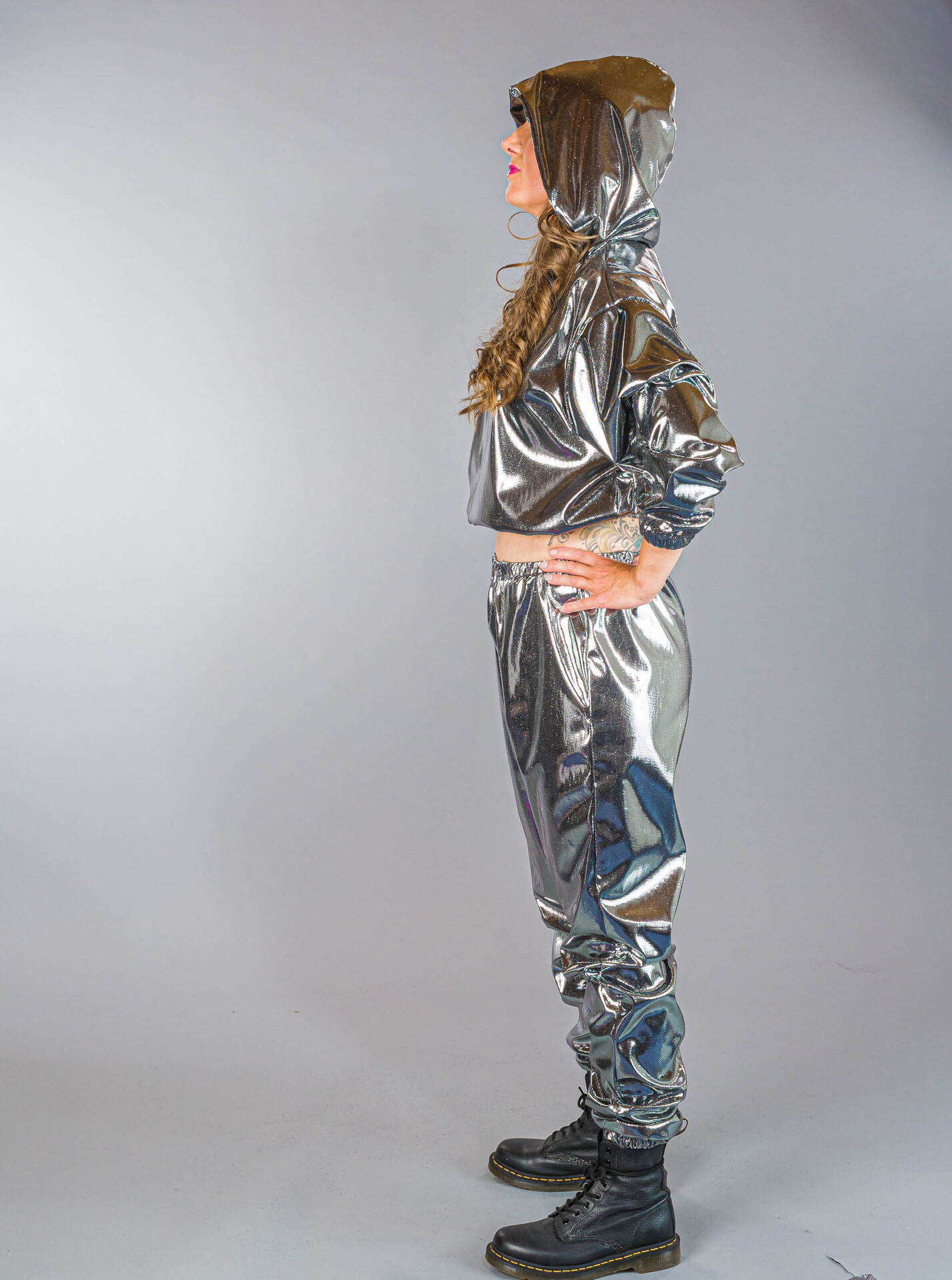 Ein flippiges Kostüm für Disco, Hip Hop & Co. Aus Folienjersey.